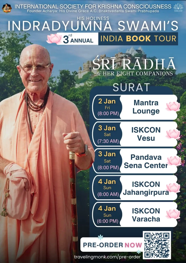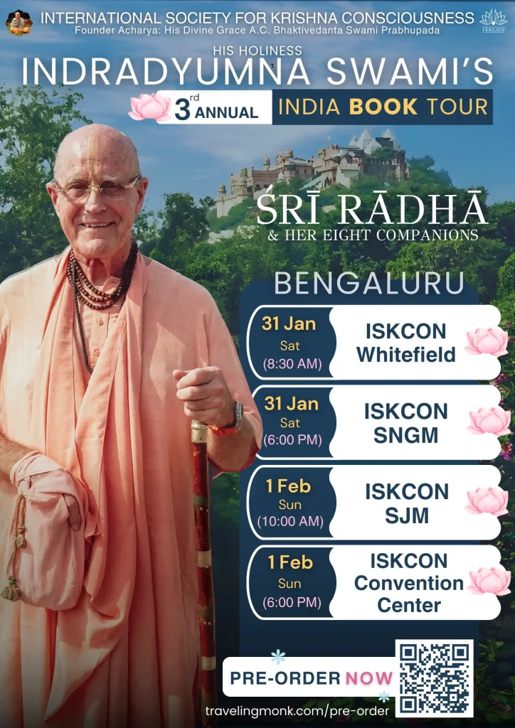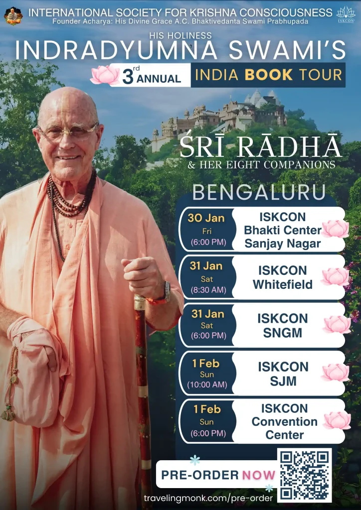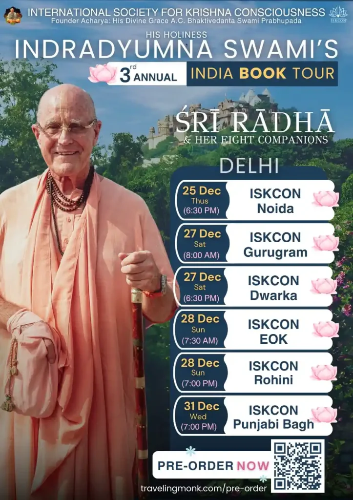 Through his narrations, Indradyumna Swami offers glimpses of Sri Radha, Her companions, and the sweetness of Vraja-bhava. His words, shaped by decades of practice and service to Srila A.C. Bhaktivedanta Swami Prabhupada, gently guide readers into Vrindavan’s devotional mood.
